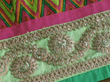胸元に入った縦の刺繍、裾まわりの金糸とスパンコールを使った飾りが華やかで派手すぎないけど、裾のキラキラはやっぱりステキ!というエスニック感が魅力です。