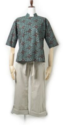 アオザイ風とは言っても普段に着れるように余裕を持ったデザインです。後身頃のみダーツを入れていますので、ゆるゆるすぎることもないですよ。襟の高さは3cmで前の5cmほどをあけていますので、首がきつすぎることもありません。